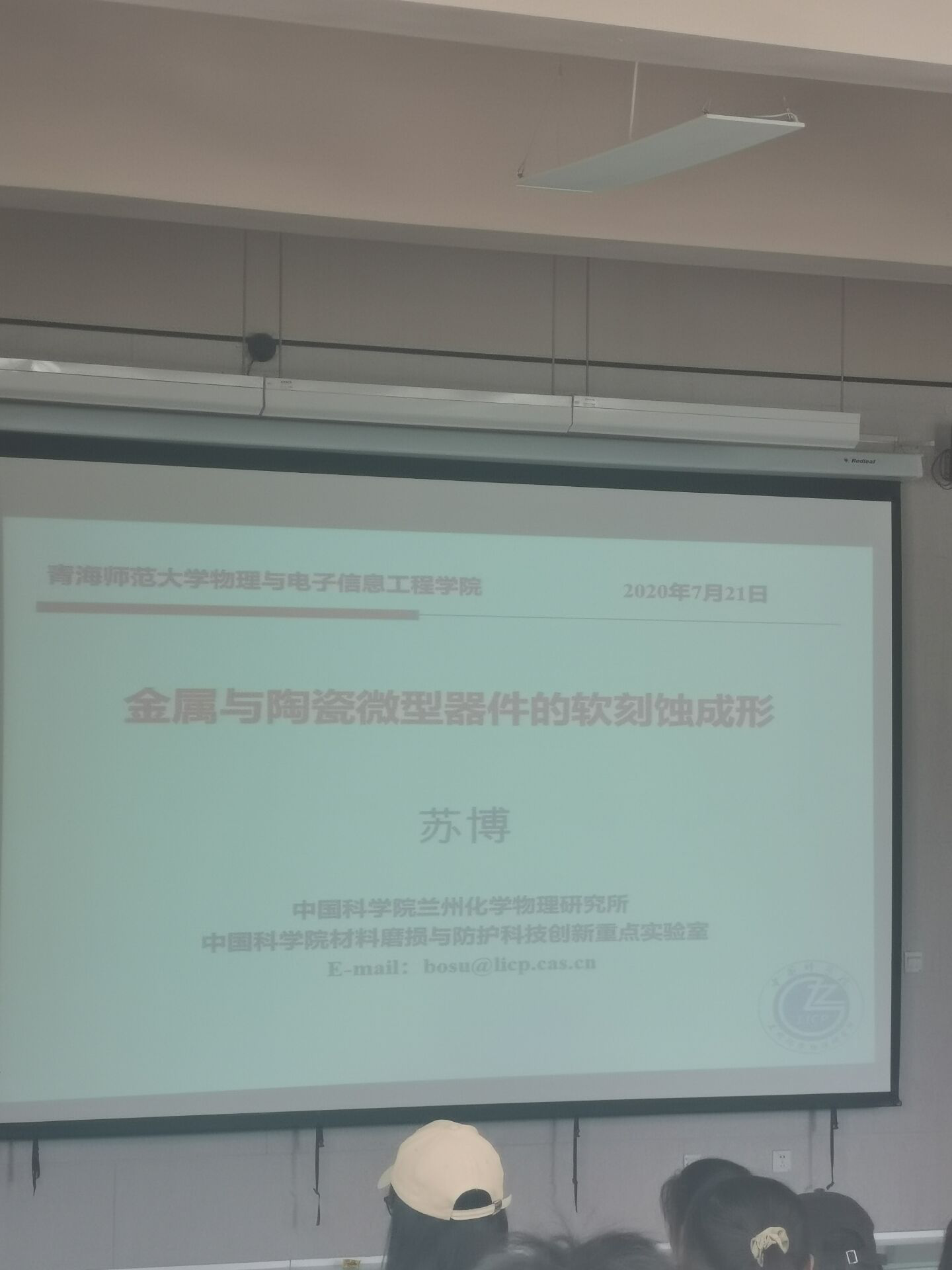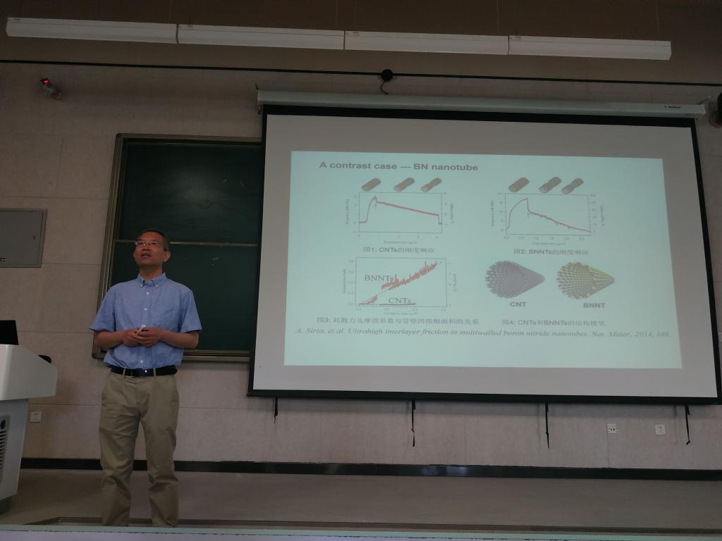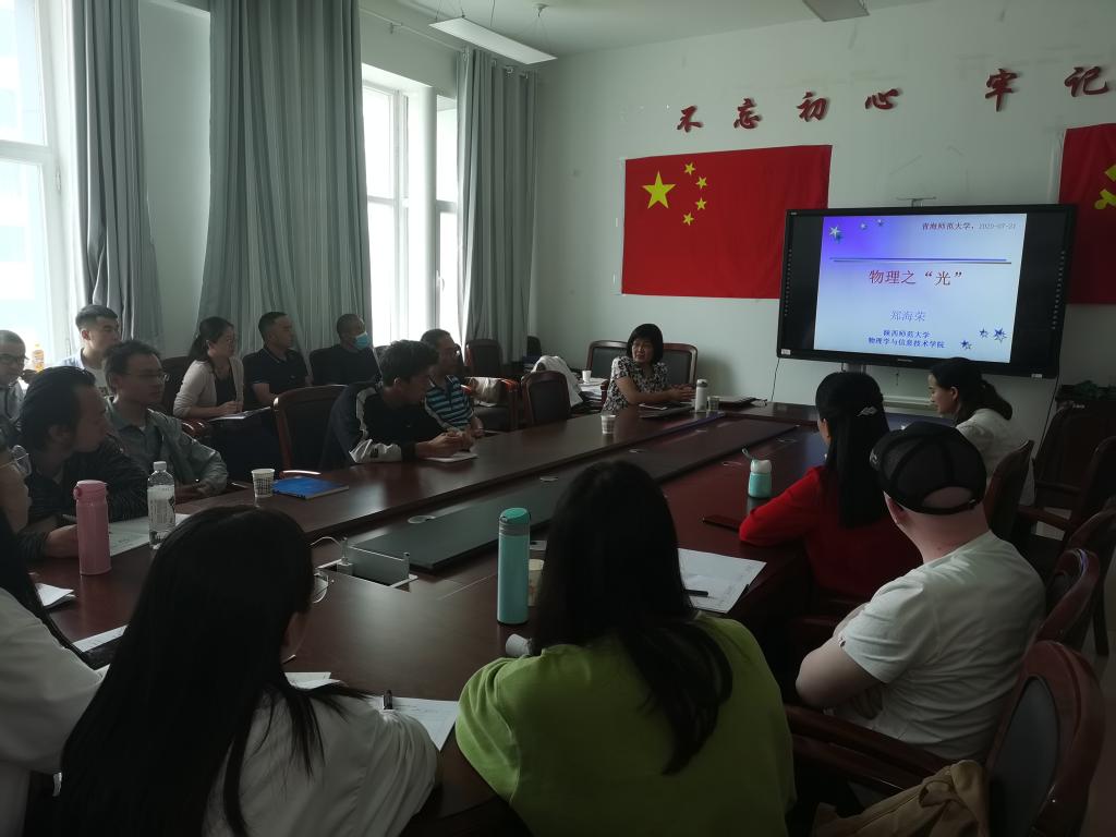 7月21日中国科学院兰州化学物理研究所张俊彦教授、阎兴斌教授、王赵锋教授、苏博博士为我院师生分别做《固体超滑研究》、《选择科研、其乐无穷——浅谈我的求学之路与科研之路》、《摩擦力发光材料研究》、《金属与陶瓷微型器件的软刻饰成形》专题讲座。7月21日陕西师范大学研究生院院长郑海荣教授义务为我院师生做题为《物理之光》的专题学术报告。