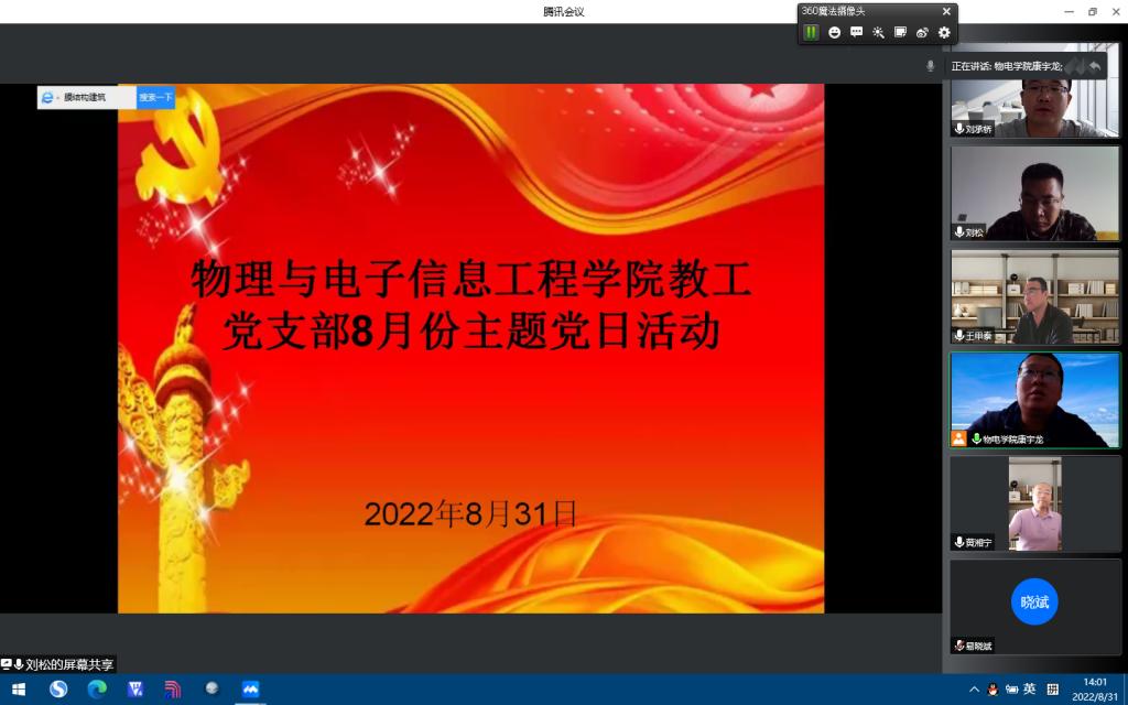 8月31日下午,新葡萄88833官网AMG教工党支部采用线上会议形式开展了“主题党日”活动。会议由党支部书记康宇龙主持,全体教工党员参加了会议。