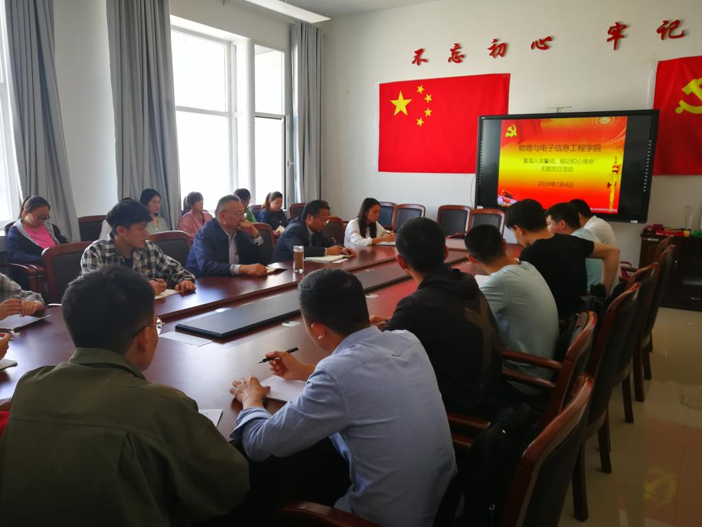 7月4日下午,新葡萄88833官网AMG党总支组织开展了以“重温入党誓词,铭记初心使命”为主题的党日活动。党总支书记张国喜、副书记王敬佩、教工党员及全体学生党员参加了活动。